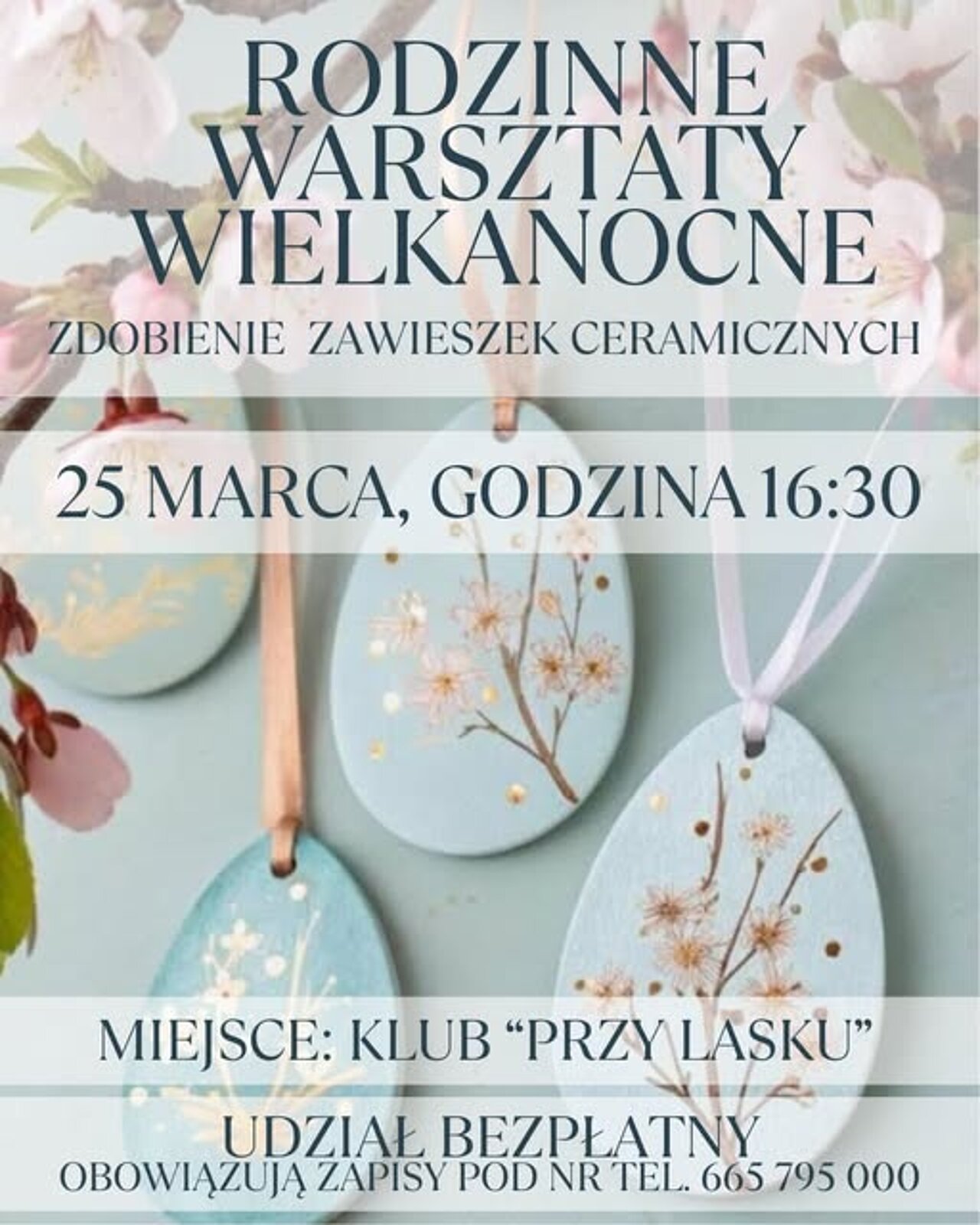 Klub "Przy Lasku" zaprasza serdecznie w środę - 25 marca o godz. 16.30 - na Rodzinne Warsztaty Wielkanocne.
